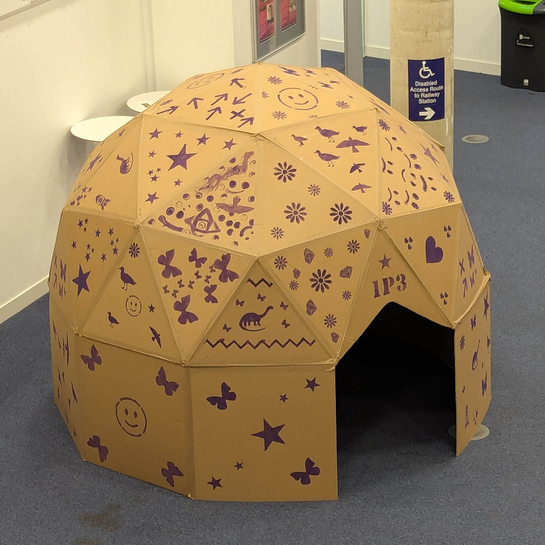 ▲ Back to the TopThis project was a fun one! From small beginnings in the back garden, it has turned into an annual session at the University of Brighton with around 125 Education students building domes.