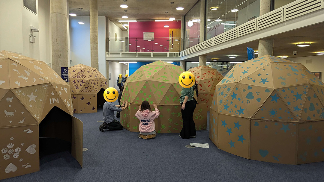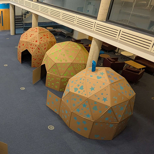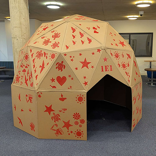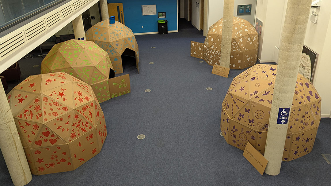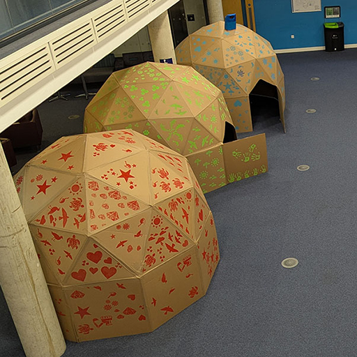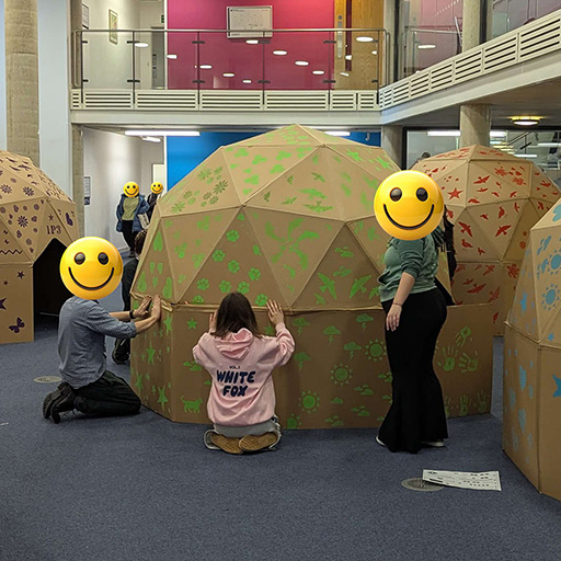 Six months later I applied for funding from the University of Brighton to run a team-building session for first year students, building five 2v geodesic domes across the week. It went well and we returned to build seven domes in 2026. The domes are now a regular part of the first year BA Education student experience at the University of Brighton.