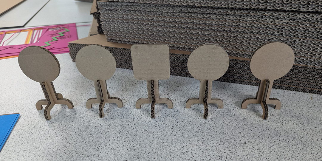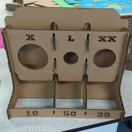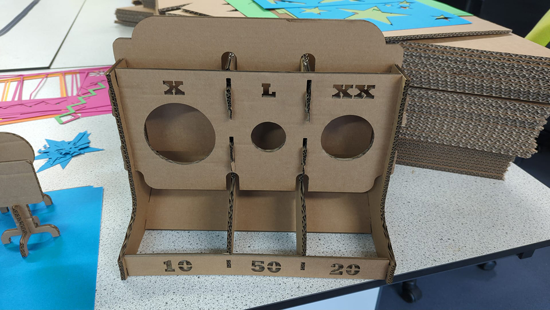 I'm lucky enough to have access to a laser cutter and a large supply of offcut cardboard (from another project), so to direct his aim away from human targets I put together a little laser-cut cardboard target.